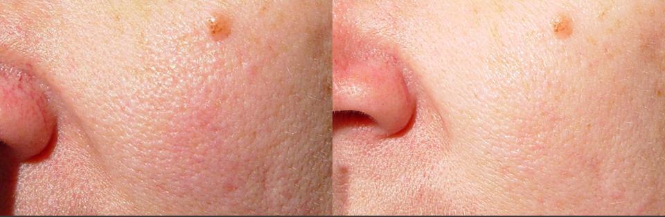 • Mild Rosacea: May notice large pores, oily skin, mild pinkness to T-zone areas, occasional blushing, and little red bumps.